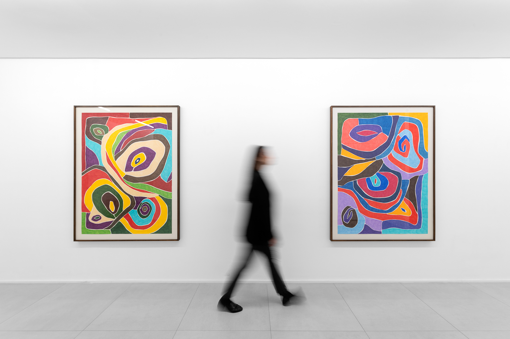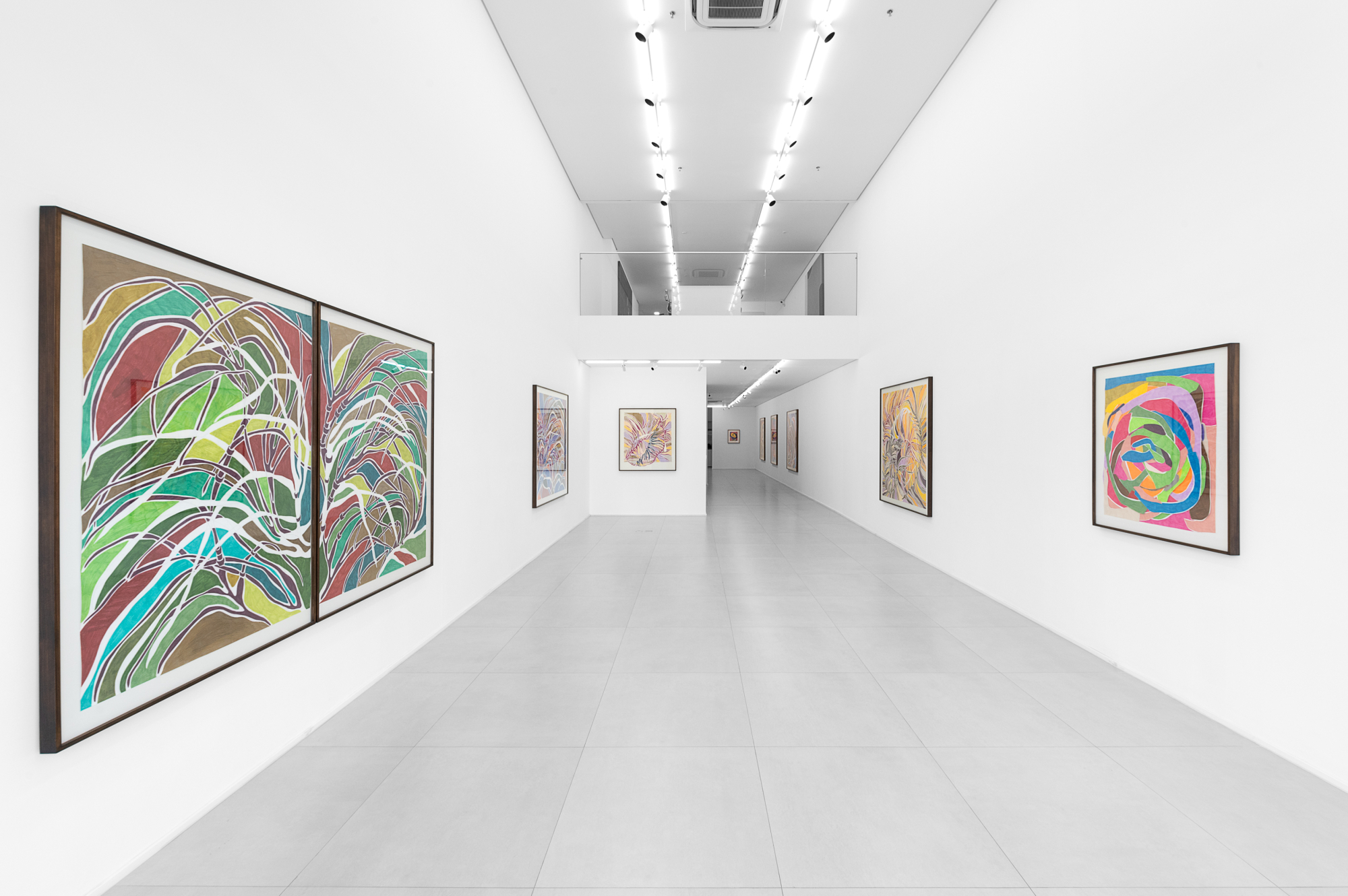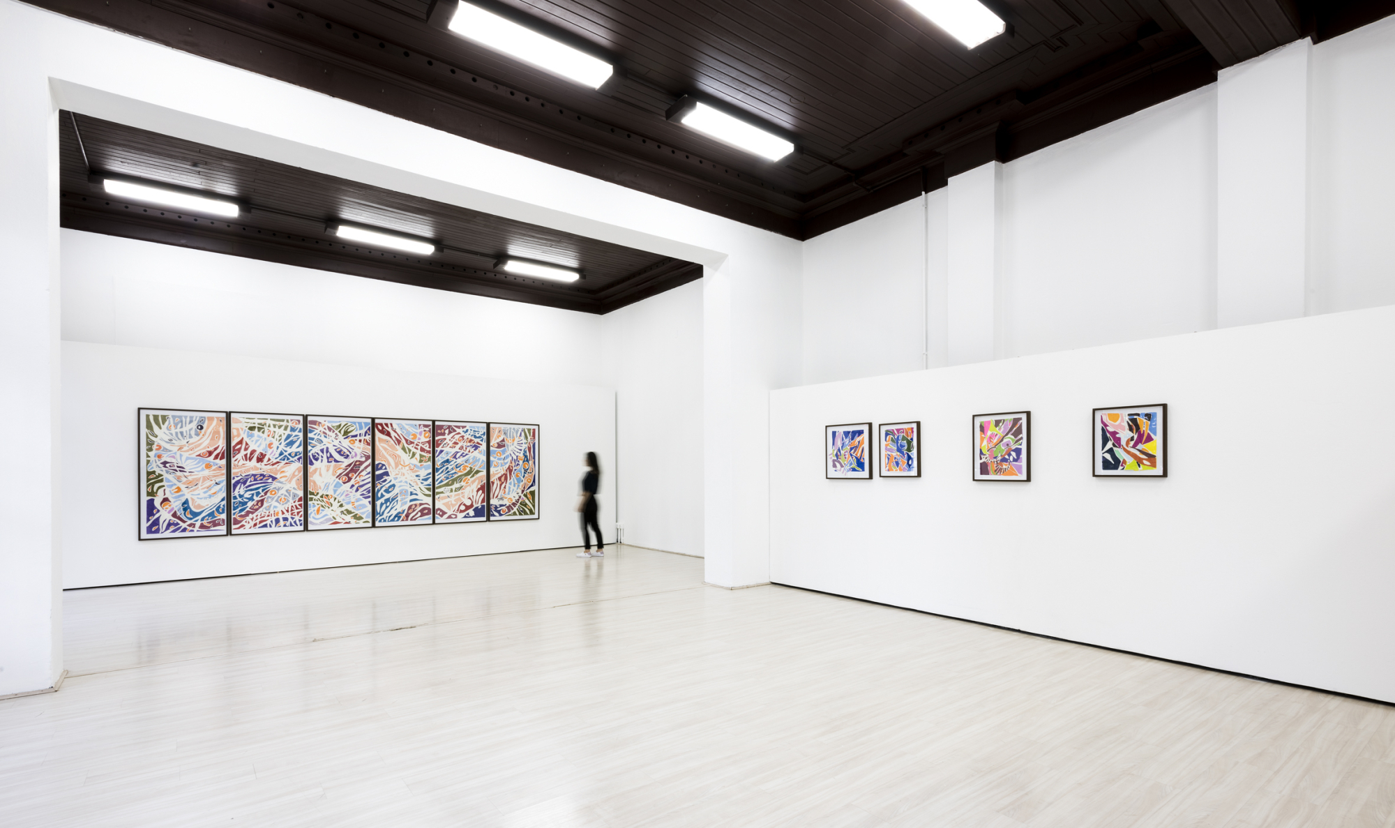 A construção do desenho se dá a partir de uma conversa entre artista e trabalho, chegando a um entendimento mútuo das necessidades da composição e atingindo um equilíbrio entre o traço, a cor e o vazio. Estes três elementos são constantemente tensionados ao longo do processo e se organizam em uma hierarquia em constante alternância. É a partir dessa oscilação que cada desenho ganha corpo: o traço e o vazio como espinha dorsal e ossos de sustentação, a cor como a carne que os envolve, e o limite do papel como a pele — o ponto exato em que corpo e desenho se encerram.