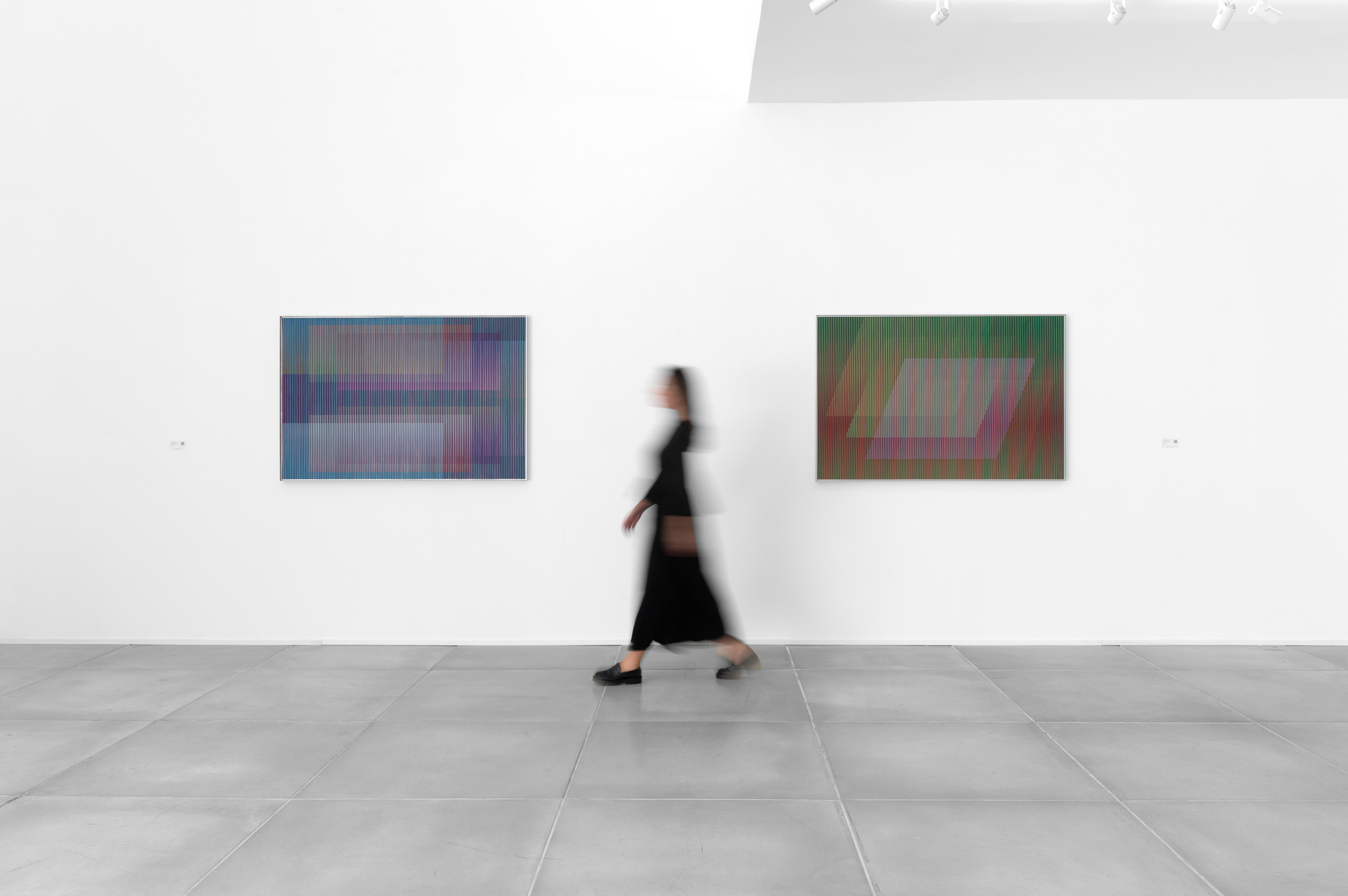 A proposição da cor evoluindo, aparecendo e desaparecendo constantemente, produz uma dialética de tempo e de espaço entre o espectador e a obra. Essa dialética precisa de um "suporte material" que evidencia o imaterial e dá um caráter próprio para cada uma das obras.