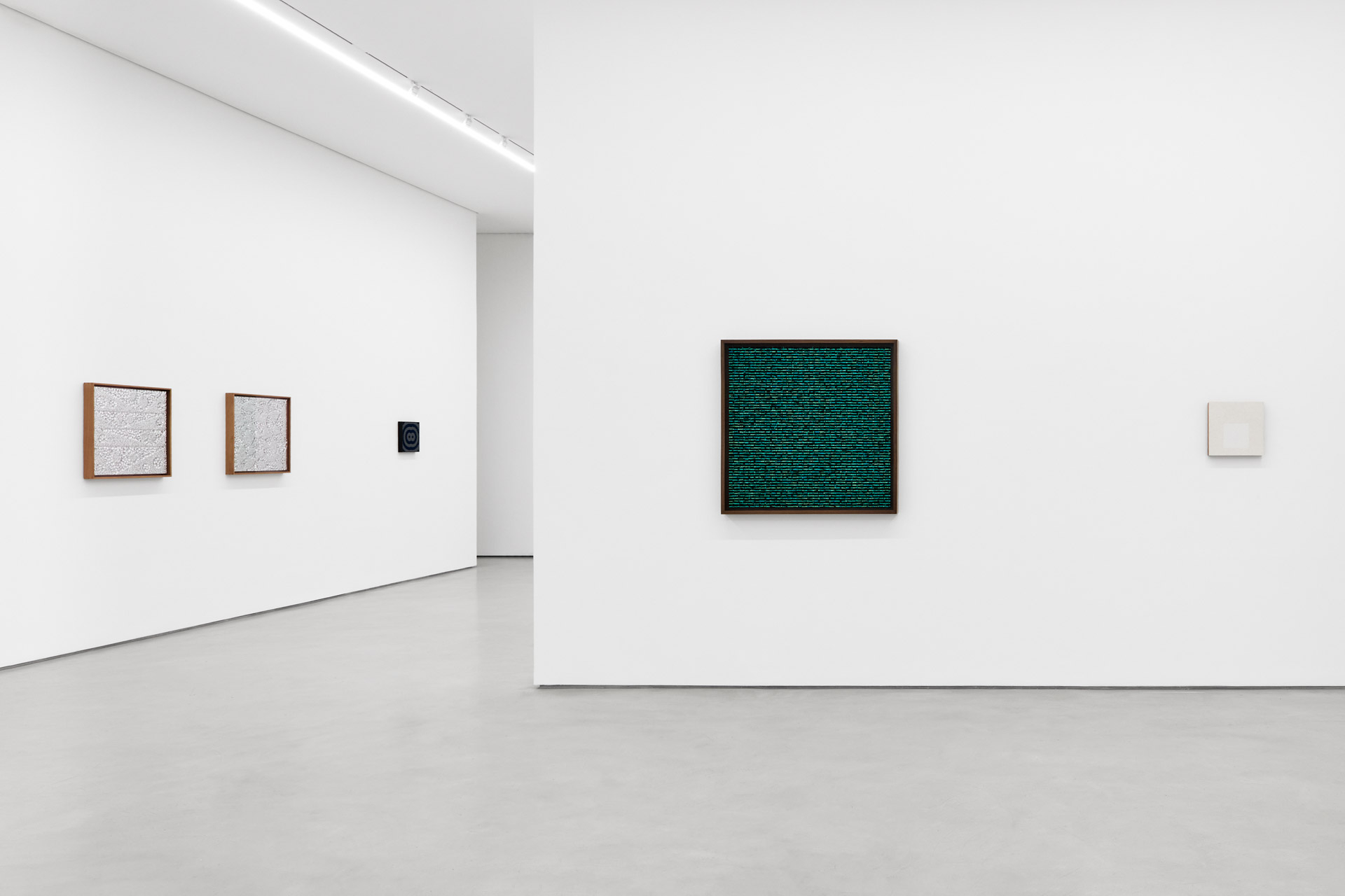Por fim, mas não menos importante, há os trabalhos usando rocha obsidiana, um material que resulta do resfriamento rápido de magma vulcânico – também aqui a natureza agindo como co-autora. Essas obras demandam um cuidado técnico especialmente caro a de la Mora. Finas lascas da pedra são quebradas e polidas ou esmerilhadas, levando a texturas opacas ou reflexivas, e suas combinações na superfície dos trabalhos criam áreas de profundidade e volume. Mas há também um aspecto místico nestas obras. O uso da obsidiana é marcado pela carga simbólica associada à rocha vulcânica – há quem diga que ela repele a negatividade, enquanto outros a consideram a pedra da justiça, sendo muito usada em meditações ou terapias alternativas. O mineral é bastante comum no México, onde seu uso (ritualístico, como material de troca, e até como ferramenta e arma) data de 600 d.C. Toda essa bagagem histórica e alegórica é reverberada na adoção deste elemento recentemente adicionado ao rol de materiais que são apropriados pelo artista em sua prática incansável de repetir para fazer diferente.