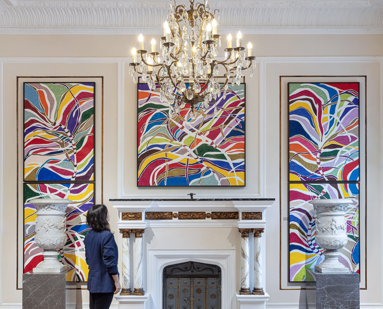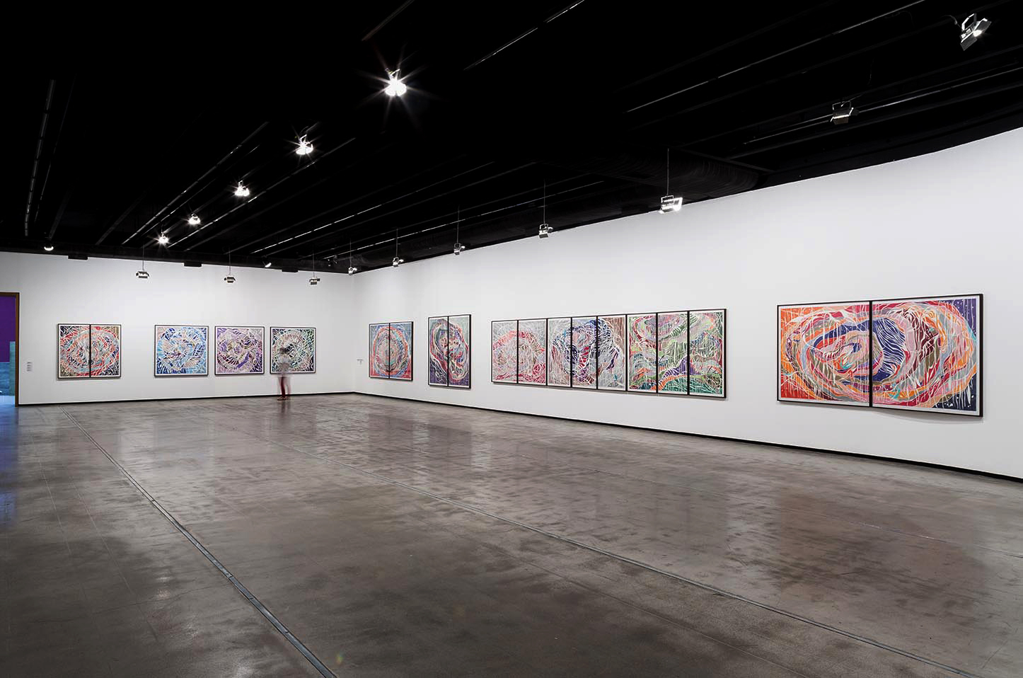 A construção do desenho se dá a partir de uma conversa entre artista e trabalho, chegando a um entendimento mútuo das necessidades da composição e atingindo um equilíbrio entre o traço, a cor e o vazio. Estes três elementos são constantemente tensionados ao longo do processo e se organizam em uma hierarquia em constante alternância. É a partir dessa oscilação que cada desenho ganha corpo: o traço e o vazio como espinha dorsal e ossos de sustentação, a cor como a carne que os envolve, e o limite do papel como a pele — o ponto exato em que corpo e desenho se encerram.