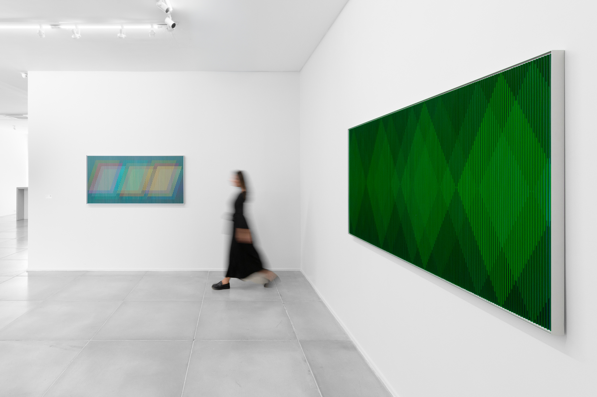 A proposição da cor evoluindo, aparecendo e desaparecendo constantemente, produz uma dialética de tempo e de espaço entre o espectador e a obra. Essa dialética precisa de um "suporte material" que evidencia o imaterial e dá um caráter próprio para cada uma das obras.