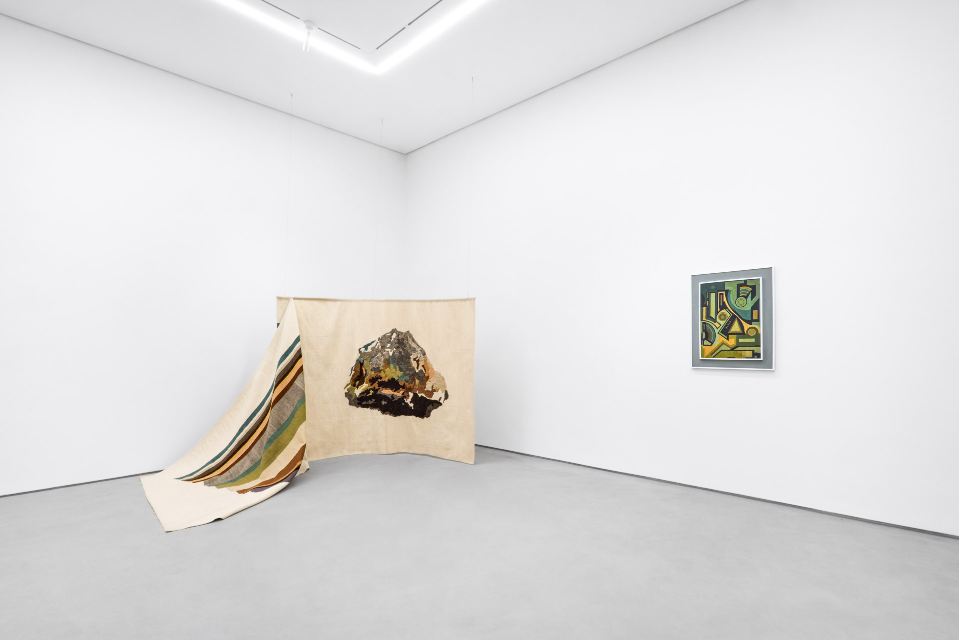 Ao contrário das explorações cósmicas – embora em sintonia com elas –, as obras de Olga de Amaral (Bogotá, 1932) e Ana Teresa Barboza (Lima, 1981) estão ancoradas no orgânico, no material e no terrestre. Em vez de olhar para o céu, suas poéticas surgem do coração dos universos animal, vegetal e mineral. Desde os anos 1960, Amaral explora as possibilidades expressivas da fibra e do tecido, criando formas esculturais sensoriais. Sua obra estabelece um diálogo com as texturas e formas dos tecidos pré-colombianos, incorporando materiais como corantes naturais, folha de ouro ou crina de cavalo, e evocando paisagens, monumentos e objetos rituais. Suas peças se apresentam como forças que habitam o espaço de forma contundente e silenciosa. Barboza, por sua vez, elabora esculturas têxteis que traçam uma continuidade entre o vegetal e o mineral. Suas obras remetem a mapas e topografias que não respondem à lógica estatal ou às fronteiras políticas do Estado-nação, mas sim às forças geológicas e biológicas do território: a força dos rios, dos solos e dos fluxos de água e matéria que moldaram a Terra desde tempos imemoriais. Em algumas peças, a artista chega a registrar a origem geográfica dos corantes vegetais utilizados. Em suas mãos, o tecido se transforma em casca, marca e sedimento, revelando uma história geológica e biológica anterior à presença humana. Barboza nos lembra que tecer é uma forma de ouvir o passado e falar com a Terra.