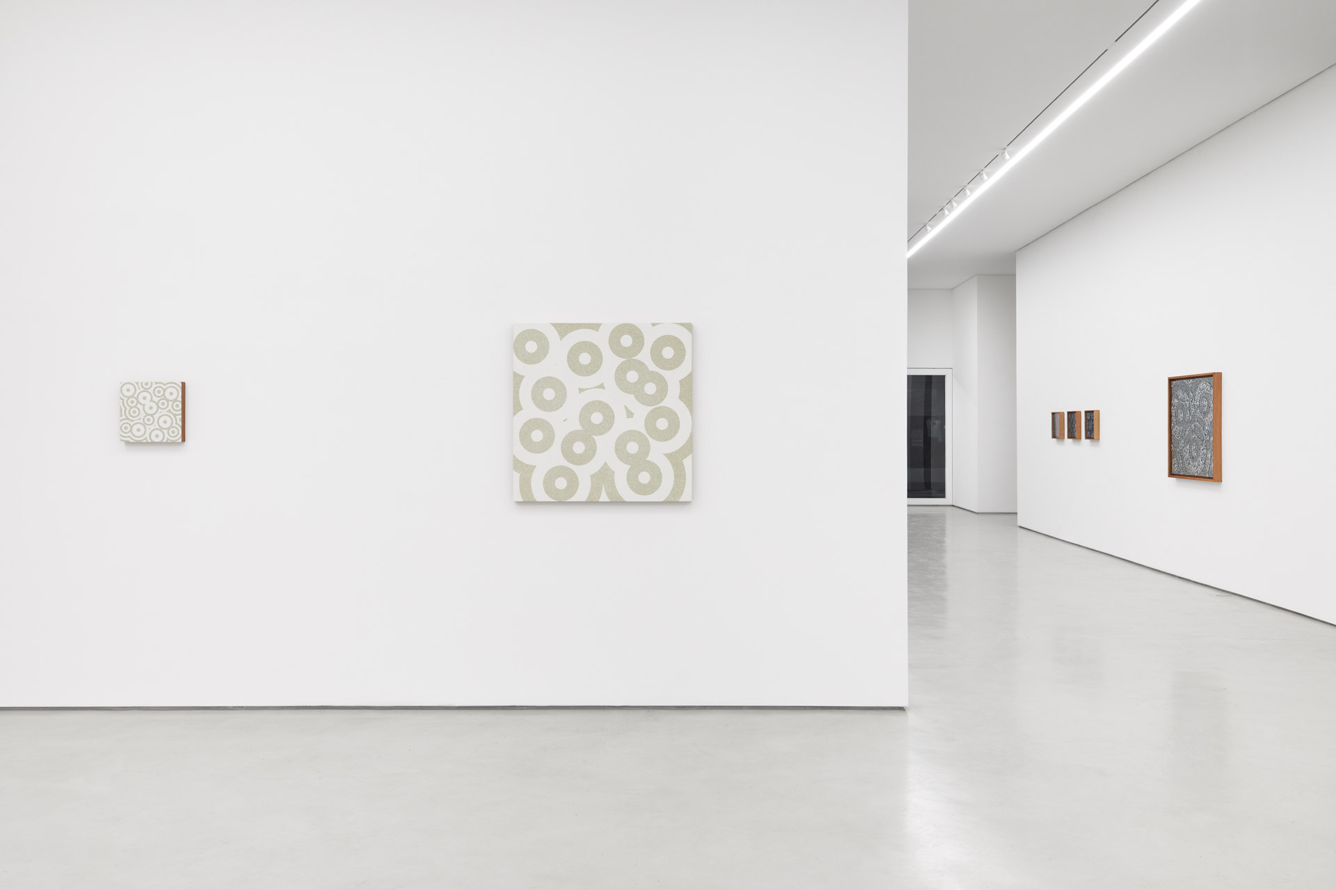 Gabriel de la Mora também lança mão frequentemente de materiais orgânicos, tomando a natureza como uma espécie de colaboradora de sua obra. Operando dentro da mesma lógica dos cacos de vidro, mas com resultados completamente distintos, a série “CaCO3”, por exemplo, é criada a partir do uso de cascas de ovos de diferentes espécies. As lascas são separadas por cor, em uma lógica que segue a da pintura. Sua colocação minuciosa sobre o suporte não deixa lugar para áreas vazias e nem aceita sobreposições, em um jogo de quebra-cabeças de imperfeita precisão. À primeira vista simples e monocromáticas, essas obras são intrincadas ao extremo, revelando uma infinidade de tons de branco que a própria natureza produz.